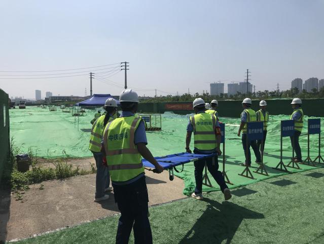 本次應急救援演練由河西集團新城公司承辦。模擬事故發(fā)生后,班組負責人向項目安全部匯報。項目經(jīng)理立即聯(lián)系附近雙閘街道衛(wèi)生院請求醫(yī)護救援,組織應急救援工作,向監(jiān)理及甲方主要領導報告事故發(fā)生情況。隨后,有關人員及隊伍按照現(xiàn)場救援指揮部的指示及《高溫中暑應急救援預案》的要求開展救援及善后工作。