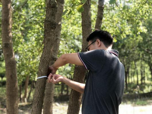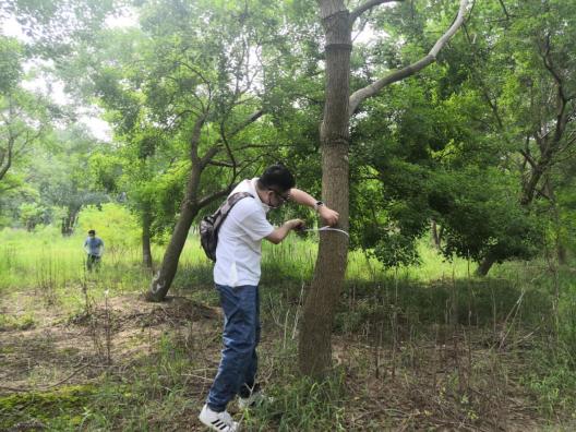近期“秋老虎”發(fā)威,炎炎烈日、驕陽似火,林中蚊蟲叮咬,地面起伏、時有溝壑。但沒有一個人叫苦喊累,認(rèn)真的用樹尺測量每一棵苗木,并詳細(xì)記錄。至太陽西下,大家用腳丈量了500多畝田地,測量了10000余株苗木?!巴陜善诘拿缒颈P點,我要盤四五天才能盤點完,現(xiàn)在有大家的幫忙,不到一天就完成了,工作效率大大提高了?!泵缙载?fù)責(zé)人高興地說。