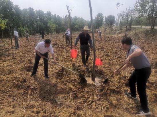 其后,大家來(lái)到公司位于浮山村苗圃的幫扶林,領(lǐng)導(dǎo)和公司黨員們一起,兩人一組將從農(nóng)戶(hù)新采購(gòu)的苗木種植到位。大家有的扶樹(shù)正苗,有的揮鍬培土,有的踩土定植,配合十分默契,不一會(huì)苗圃基地再添一抹新綠。