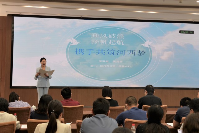 為響應(yīng)集團(tuán)黨委號(hào)召,進(jìn)一步貫徹落實(shí)集團(tuán)半年總結(jié)大會(huì)精神,展現(xiàn)職工昂揚(yáng)向上的精神風(fēng)貌,激發(fā)職工干事創(chuàng)業(yè)的豪邁熱情,7月27日,河西集團(tuán)總部舉辦了“踔厲奮發(fā)向未來(lái) 我與河西共成長(zhǎng)”主題演講選拔賽。本次選拔賽由機(jī)關(guān)黨總支和機(jī)關(guān)工會(huì)共同舉辦,共有來(lái)自各部室的8組選手參加。各部室主要負(fù)責(zé)人出席了本次比賽并擔(dān)任評(píng)委,機(jī)關(guān)工會(huì)主席、辦公室副主任王俊,集團(tuán)工會(huì)副主席、機(jī)關(guān)黨總支書記、黨群工作部部長(zhǎng)蘇小剛發(fā)表講話。