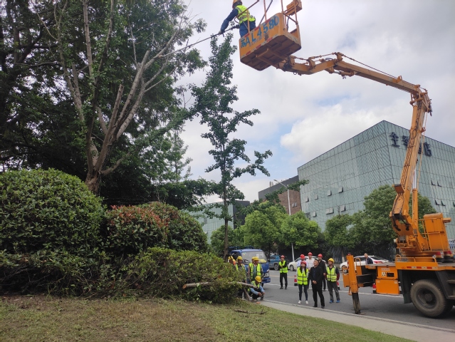 與此同時(shí),另一條指令隨即傳出,“河西大街樹(shù)木枯枝斷枝,存在極大安全隱患,立刻到場(chǎng)處置”。公司立即調(diào)配3輛園林搶險(xiǎn)車(chē)輛、1輛高架車(chē),20名搶險(xiǎn)隊(duì)員第一時(shí)間趕到現(xiàn)場(chǎng)。指揮勘查險(xiǎn)情、實(shí)施圍擋、引導(dǎo)交通、處理險(xiǎn)枝,大家分工明確、操作熟練,搶險(xiǎn)過(guò)程一氣呵成。20分鐘后,這株干徑超過(guò)40厘米、高10米的大樹(shù)上的枯枝已全部修剪到位,解除了安全隱患。