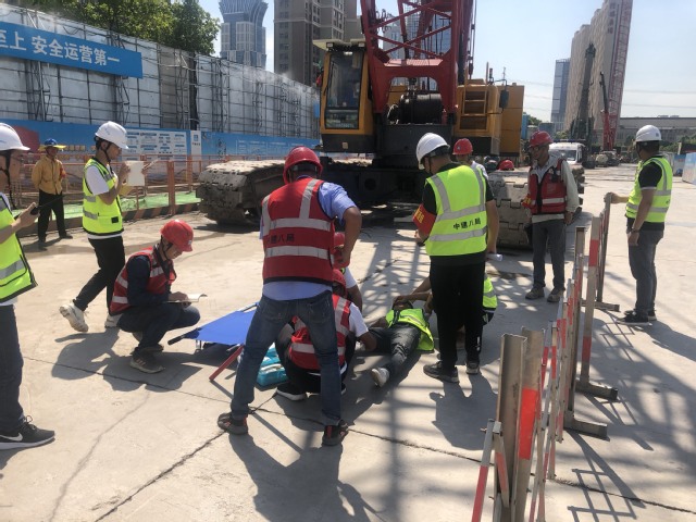 本次應(yīng)急演練活動(dòng)模擬施工現(xiàn)場(chǎng)履帶式起重機(jī)在作業(yè)過程中由于鋼絲繩斷裂,吊物從高處掉落倒下,不幸將地面一名作業(yè)人員腳部砸傷的事故?,F(xiàn)場(chǎng)專職安全員發(fā)現(xiàn)后第一時(shí)間向應(yīng)急救援指揮部匯報(bào),應(yīng)急救援指揮部立即啟動(dòng)應(yīng)急預(yù)案,各應(yīng)急救援小組接到救援命令后,迅速跑向事故地點(diǎn),對(duì)受傷人員開展救援工作,同時(shí)拉起警戒線,保護(hù)現(xiàn)場(chǎng)。救援人員按預(yù)案分工,有條不紊地實(shí)施清障、包扎、傷員擔(dān)架固定、運(yùn)送上救護(hù)車等一系列動(dòng)作。本次演練活動(dòng),增強(qiáng)了員工的安全操作意識(shí),提高了快速反應(yīng)能力、應(yīng)急救援能力以及協(xié)同作戰(zhàn)能力。