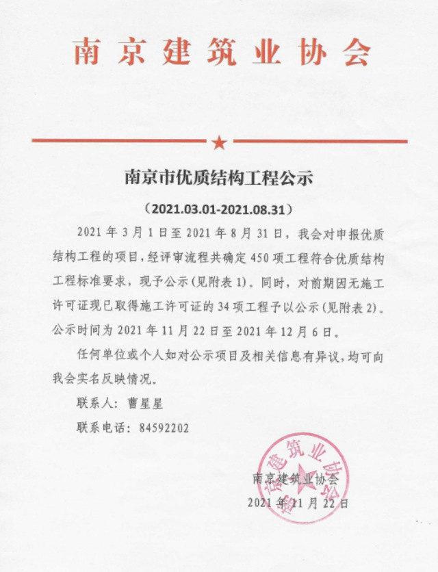 近期,河西南部小學(xué)(6#)及鄴城路幼兒園項(xiàng)目幼兒園單體被評為“南京市優(yōu)質(zhì)結(jié)構(gòu)工程”,此次獲評,意味著該項(xiàng)目在工程結(jié)構(gòu)設(shè)計(jì)、工程施工管理、過程質(zhì)量控制等方面得到了南京市質(zhì)監(jiān)站、建筑業(yè)協(xié)會等部門的肯定,施工質(zhì)量達(dá)到南京市領(lǐng)先水平。