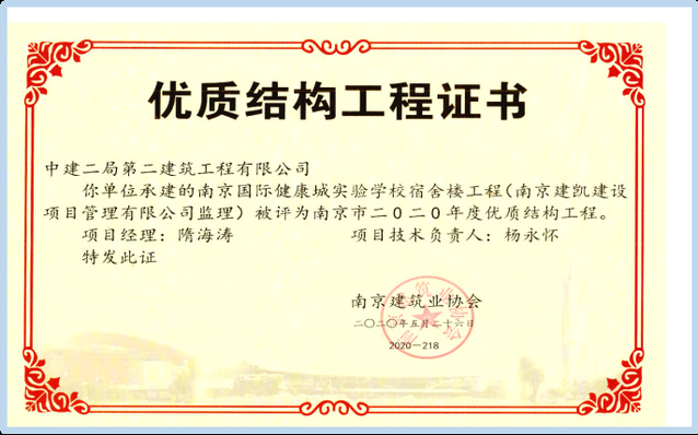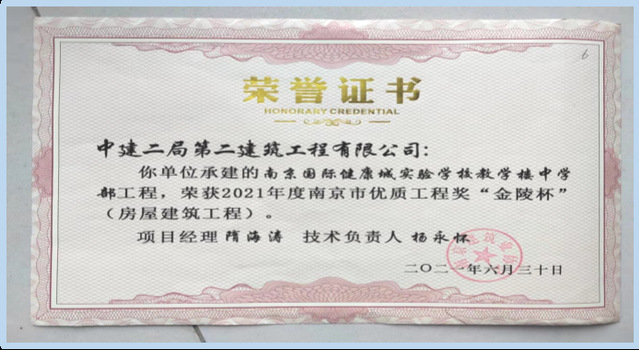 2021年12月6日,中國施工企業(yè)管理協(xié)會公布2020-2021國家優(yōu)質(zhì)工程獎獲獎名單,河西集團新城公司所屬南京河西工程項目管理有限公司代建的南京國際健康城實驗學(xué)校項目喜獲該獎項。國家優(yōu)質(zhì)工程獎設(shè)立于1981年,是經(jīng)國務(wù)院確認(rèn)的我國工程建設(shè)領(lǐng)域設(shè)立最早,規(guī)格最高,跨行業(yè)、跨專業(yè)的國家級質(zhì)量獎。