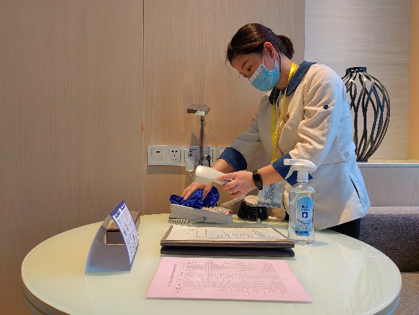 面對會議期間高頻次的清掃量、大量的房內(nèi)物資配備以及住店客人們的各樣需求,客房服務員們都能做到忙而不亂,將最好的房態(tài)呈獻給會議代表,讓他們感受家一般的溫馨。PA也加強對公共區(qū)域的衛(wèi)生清潔,保證酒店整體清潔舒適。