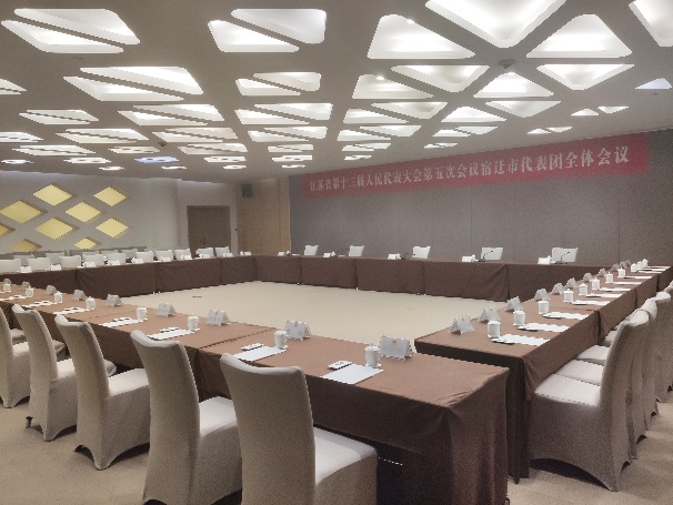 本次會議,國青酒店承擔了常州、鎮(zhèn)江、揚州、泰州、淮安、宿遷、連云港7個代表團參會代表及大會工作組的會議和食宿服務任務。