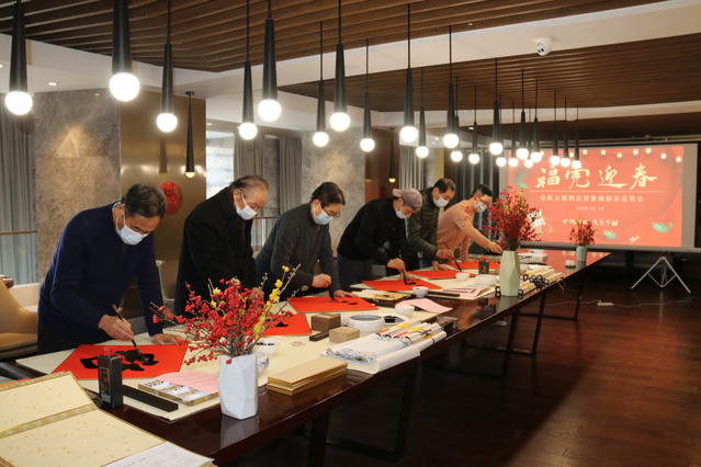 寫春聯(lián)、貼春聯(lián)是中國春節(jié)的傳統(tǒng)習(xí)俗,也是辭舊迎新過大年的一種象征。為弘揚(yáng)中華書法藝術(shù)與傳統(tǒng)節(jié)日文化,給市民、住店客人送上新春祝福。近日,河西集團(tuán)青奧城公司金帆萬源酒店開展“?;⒂骸?022新年納福公益筆會(huì),來自南京的書畫名家應(yīng)邀出席。