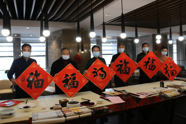 “東風(fēng)化雨山山翠,政策歸心處處春”;“行鴻運(yùn)年年興旺,迎百福歲歲平安”……一幅幅蒼勁有力的春聯(lián),一句句吉祥喜慶的祝福,一個(gè)個(gè)手寫的福字,將迎接新春的喜慶傳給大家。